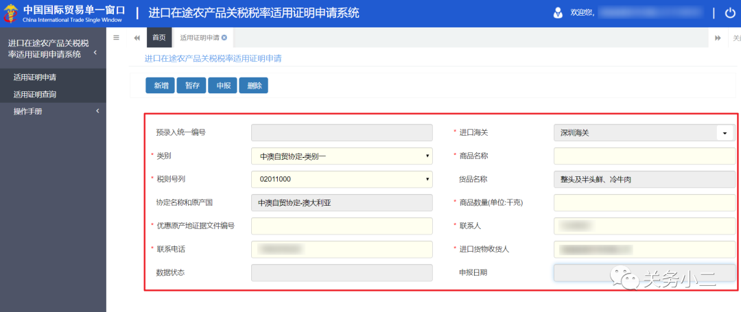 进口在途农产品关税税率适用证明管理系统操作指南: