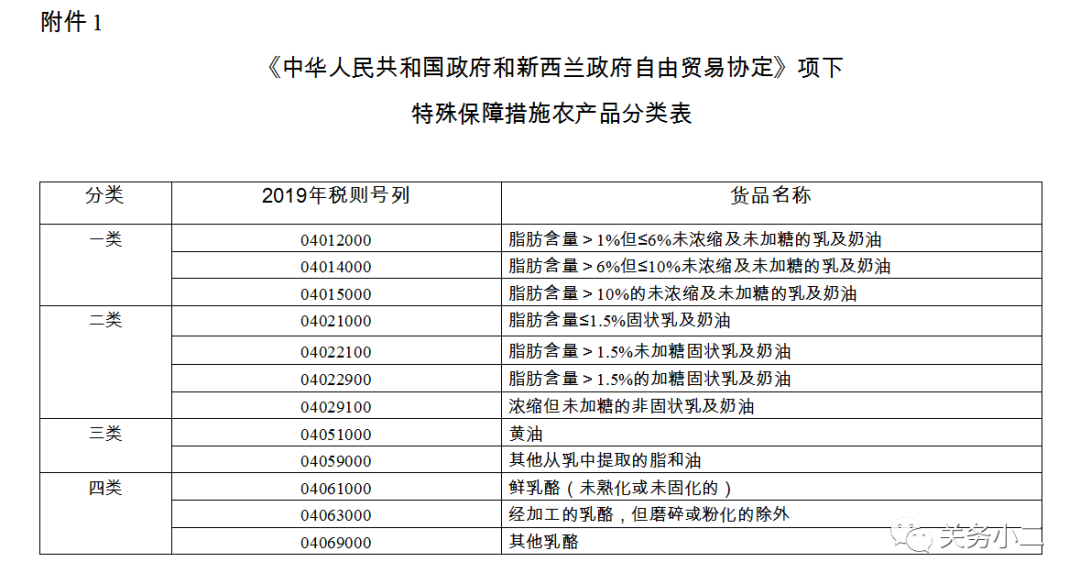 1.2021年度进口新西兰第一类农产品不能适用协定税率,即自2021年起,对进口原产于新西兰的第一类农产品(税则号列04012000、04014000、04015000)恢复按最惠国税率征收进口关税。