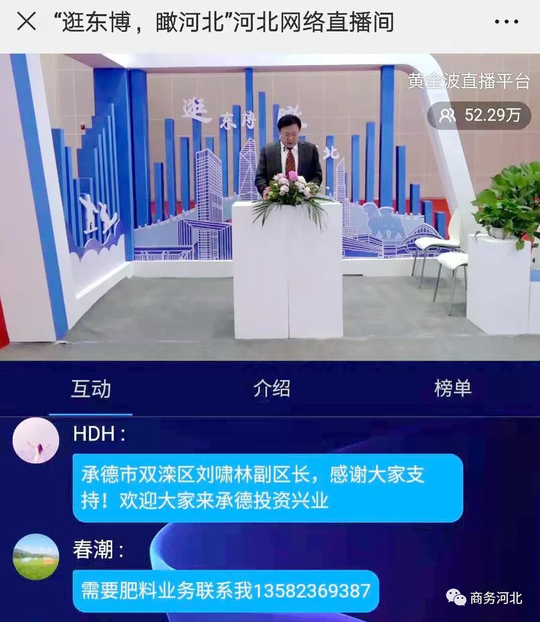本次展会,河北省组织加工机械、食品包装、建筑建材、通信设备等行业企业参展,设立了120㎡的河北形象展区。结合疫情防控常态化特点,河北省代表团主动求变,积极创新,积极借助网络直播最新业态形式首次设立“逛东博 瞰河北”网络视频直播间,开设了重点县(市、区)直播专场、开发区直播专场和企业直播专场,先后组织承德、秦皇岛2个市,承德市双滦区、秦皇岛市山海关区、北戴河经济开发区3个区,廊坊霸州市京华金属制品有限公司、智捷智能科技香河有限公司等11家企业走进直播间进行现场直播和推介。直播间累计访问量高达60万人次,极大地宣传了河北的重点产业和特色产品,提升了河北知名度,成为了各市和参展企业招商引资、推介产品、寻找商机的新途径。