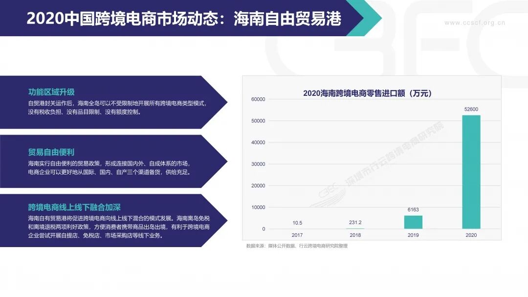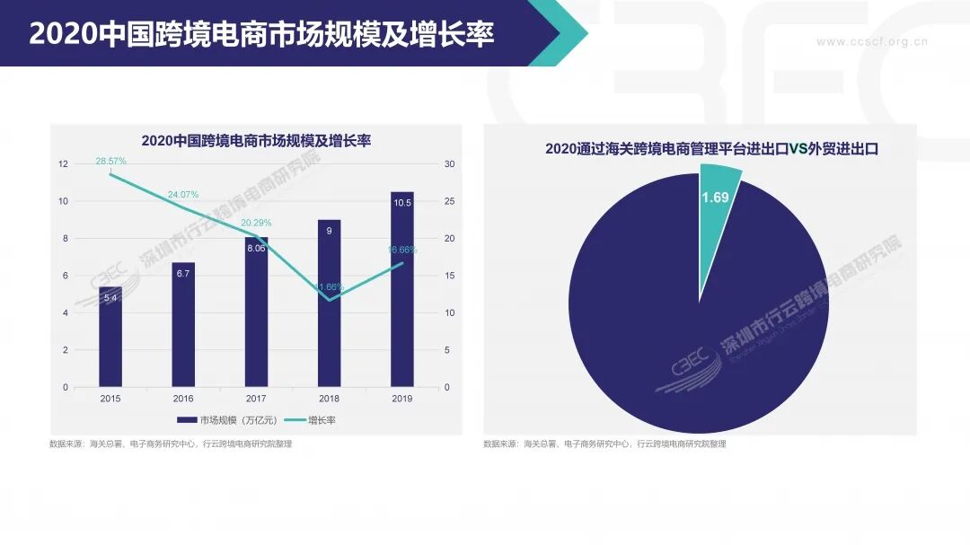 2021年2月,深圳市行云跨境电商研究院(www.ccscf.org.cn)发布《2020中国跨境电商市场发展报告》,在新冠疫情、海南自贸港、RCEP等热点下,围绕跨境电商市场动态、交易现状、竞争格局、发展趋势等方面进行分析。《2020中国跨境电商市场发展报告》由研究院旗下微信公众号“跨境供应链前瞻”首发,完整报告获取请关注“跨境供应链前瞻”。