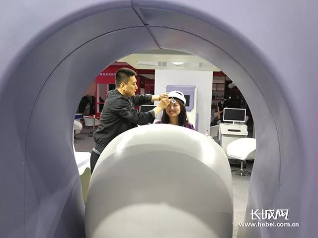 今年5•18经洽会上,市民正在体验秦皇岛经济开发区展厅展示的先进医疗设备。 记者王林红 摄